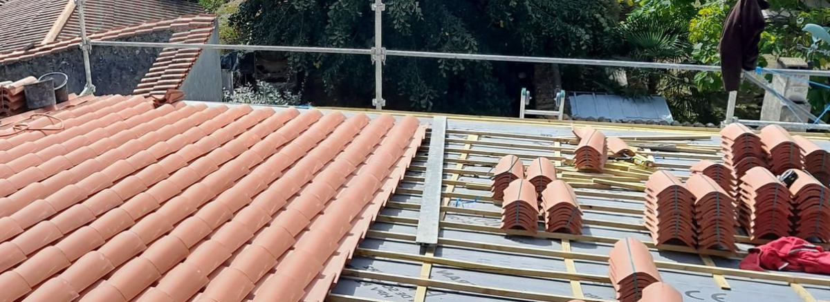 Experts en couverture et zinguerie, nous réalisons tous vos travaux de toiture : pose complète, installation de gouttières, habillage en zinc, réparation et entretien des tuiles.